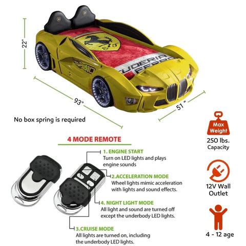 One of the standout features of this carbed is its integrated LED lights. These lights not only enhance the aesthetic appeal of the bed but also provide a practical nightlight for your child. The LED lights are strategically placed to simulate the headlights and undercarriage lights of a real race car, adding a realistic touch to the bed. Additionally, the bed features sound effects that mimic the roar of an engine, making your child feel like they're starting their engines for an exciting race every night.