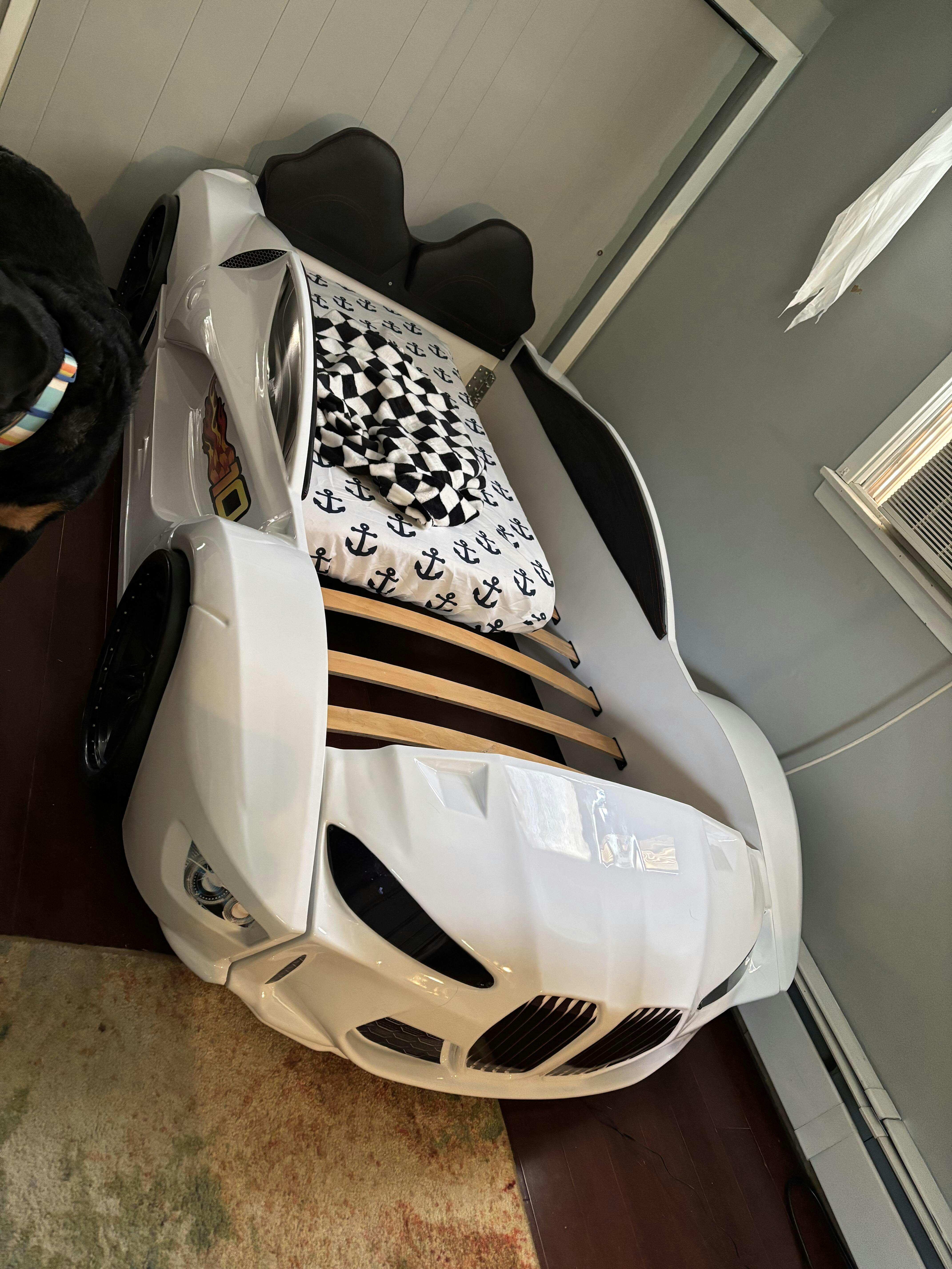 Constructed from high-quality materials, the Race Car bed is built to last. The sturdy frame ensures durability, while the comfortable mattress support provides a restful night's sleep. The bed is also designed with safety in mind, featuring rounded edges and low profile to prevent any accidental falls. Assembly is straightforward, thanks to the clear instructions and included hardware, allowing you to set up the bed quickly and efficiently.