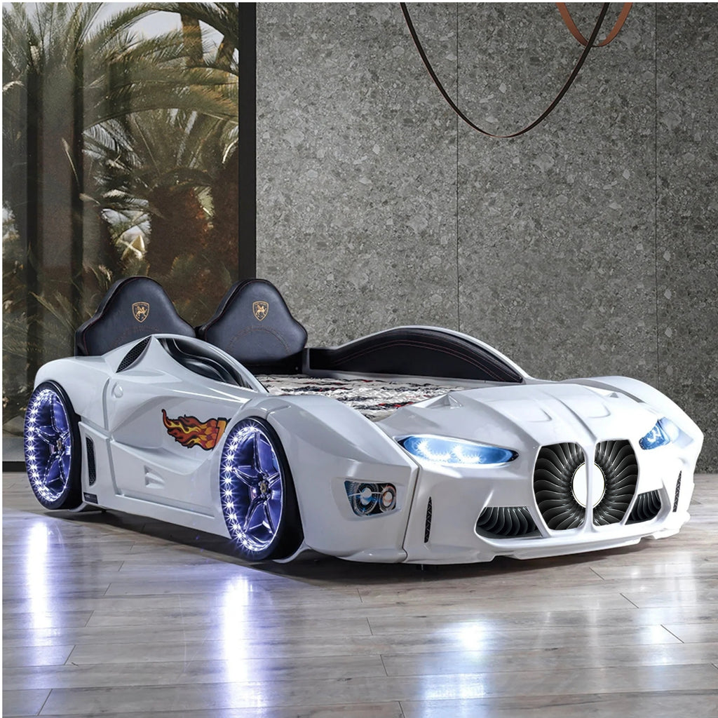GTM Twin Race Car Bed with LED Lights & Sound FX