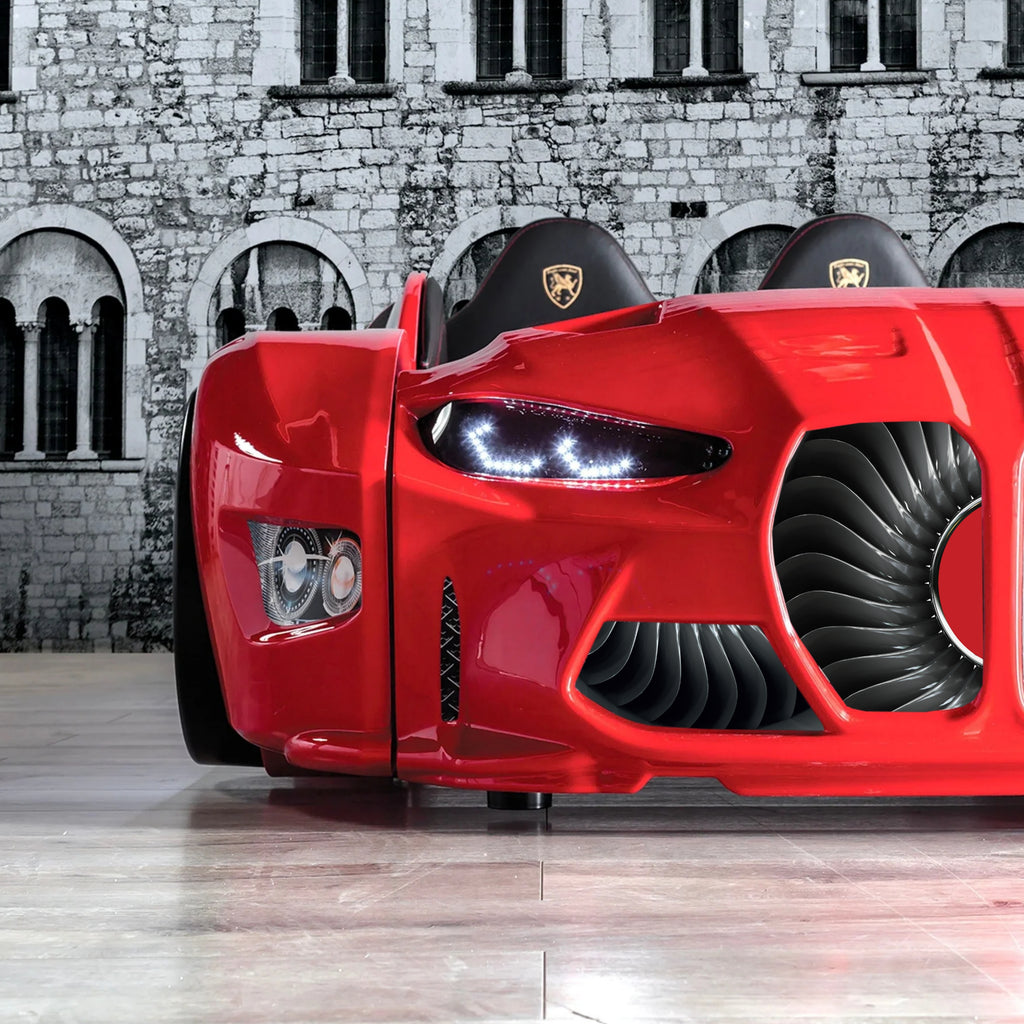 The GTM Twin Race Carbed with LED lights & sound FX is an exhilarating addition to any young car enthusiast's bedroom. Not only does this carbed provide a comfortable and secure sleeping environment for your child, but it also brings the thrill of the race track directly into their room. This meticulously designed bed captures the essence of a race car, complete with sleek lines and vibrant colors, making bedtime a fun and adventurous experience.
