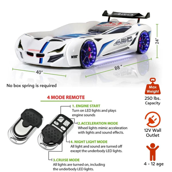 Inspire your little one's race car dreams with the MNV1 Race Car Bed! This Twin Size Race Car Bed is custom designed by the experts to look just like a race car, but spacious and comfortable enough to sleep in without feeling cramped.